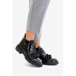 Elegantné nízke čižmy z prírodnej kože sú ideálnou voľbou na chladnejšie dni. Zateplený model, ktorý poskytuje teplo a pohodlie. Zapínanie na zips. Ozdoba na prednej strane dodáva čižmám elegantný charakter. Zaoblená špička a plochý podpätok zaručujú pohodlie, vďaka čomu sú tieto čižmy ideálnou voľbou na každodenné nosenie a elegantnejší štýl.