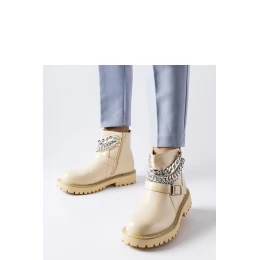 Béžové členkové topánky Mezzavia sú ideálnou kombináciou štýlu a pohodlia. Ich najväčšou výhodou sú ozdobné retiazky, ktoré im dodávajú charakter a robia ich neuveriteľne módnymi. Ozdoby boli precízne umiestnené na skaftu topánky, vytvárajúc efektný vzor. Navyše, gumová podošva zabezpečuje dobrú priľnavosť k podkladu a odolnosť. Pohodlné zapínanie na zips uľahčuje obúvanie a vyzúvanie topánok, čo je obzvlášť praktické v každodennom používaní. Členkové topánky Mezzavia skvele doplnia rôzne štýly, ako casual, tak elegantné. Vďaka univerzálnosti sa skvele hodí na každý deň aj na špeciálne príležitosti. Tieto revolučné topánky sa stali obľúbeným doplnkom každodenných štýlizácií!