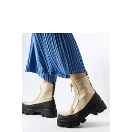 Béžové masívne členkové topánky na zips Morley sú skvelou voľbou na chladné dni. Vyrobené z odolnej gumy, sú odolné voči vlhkosti a ideálne na zimu. Ich výška nad členkom poskytuje dodatočnú ochranu proti chladu a okrúhla špička dodáva eleganciu. Stredný podpätok zaručuje pohodlie pri chôdzi a praktický zips uľahčuje obúvanie a vyzúvanie topánok. Starostlivé šitie zaisťuje trvanlivosť a teplé vnútorné prevedenie zase zaisťuje, že topánky sú ideálne aj v najchladnejšie dni. Sú to elegantné, pohodlné a funkčné topánky, ktoré sa skvele hodia na každý deň.