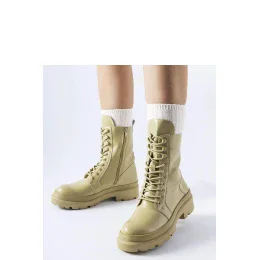 Zelené ploché trapery s ochrannou špičkou Zacharie sú skvelou zimnou obuvou, ktorá kombinuje módny dizajn a funkčnosť. Vyrobené z odolnej gumy poskytujú ochranu pred vlhkom a dažďom. Ich vysoký strih nad členok a okrúhla špička poskytujú dodatočnú ochranu pred chladom a zabezpečujú voľnosť pohybu. S praktickým zipsom je obúvanie a vyzúvanie topánok jednoduché a pohodlné. Plochý podpätok zaručuje pohodlie pri nosení po dlhú dobu a teplý vnútrajšok udržuje nohy v optimálnej teplote. Tieto zelené trapery sú skvelou voľbou pre tých, ktorí ocenia štýl, pohodlie a funkčnosť. Ideálne na jeseň a zimu.