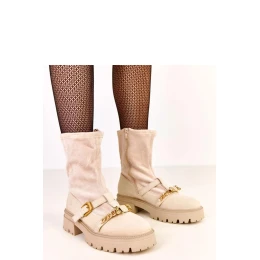 Elegantní a stylové dámské kotníčkové boty vyrobené z kombinace semišové ekologické kůže a ekologické kůže, které spojují eleganci s každodenním pohodlím. Model je vyztužen, co zajišťuje teplo v chladnějších dnech. Kotníčkové boty s výškou 20 cm dokonale sedí na noze, kulatá špička a podpatek a nízká platforma zaručují pohodlí při chůzi. Boční zip usnadňuje rychlé obouvání a svlékání. Výjimečný charakter dodává ozdobná spona a řetízek s přívěskem ve tvaru medvídka, který botům dodává dívčí a módní akcent. Vložka z umělé hmoty zajišťuje pohodlí při nošení a boty jsou nové a připravené k nošení. Je to ideální volba pro ženy, které oceňují módní vzhled, pohodlí a decentní, efektní detaily v každodenních stylizacích.