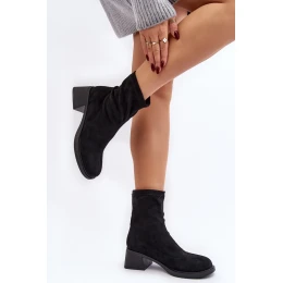 Dámske slip-on čižmy z eko-semišu. Stoja na nízkom blokovom podpätku. Zaoblená špička. Zvršok po členky. Klasický strih, ktorý sa hodí takmer ku každému jesennému outfitu!