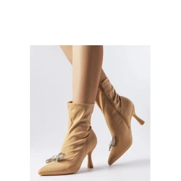 Elegantné béžové topánky zdobené krištáľovou mašľou z kolekcie Mars sú ideálnou voľbou na chladnejšie dni. Štandardná veľkosť, preto odporúčame vybrať si svoju bežnú veľkosť. Vyrobené z vysoko kvalitnej látky, majú zips na strane pre jednoduché obúvanie. Podrážka je vyrobená z odolného umelého materiálu v béžovej farbe. Skvelé pre rôzne štylizácie na jeseň a zimu. Zateplené, poskytujú pohodlie pri nosení za všetkých podmienok.