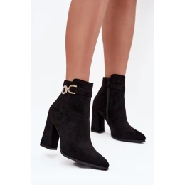 Dámske čižmy sú osadené na stabilnom podpätku v tvare stĺpika. Tento model je vyrobený z ekokože. Vnútro je vystužené obuvníckou kožou. Zapínajú sa na zips na vnútornej strane zvršku. Päta je vystužená. Špicatá špička opticky predlžuje nohy. V hornej časti zvršku je tenký pásik s ozdobou.