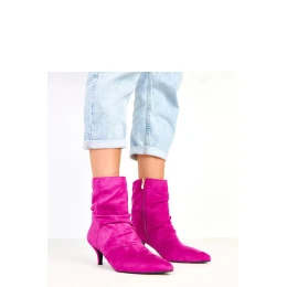 Elegantné dámske členkové čižmy vyrobené z mäkkej ekokože. Špicatá špička a 6 cm podpätok dodávajú čižmám ženský charakter a jemne zjemňujú chodidlá. Model má 16,5 cm vysoký zvršok, ktorý elegantne obopína členok a skvele sa hodí k sukniam aj nohaviciam. Vnútorná časť je vybavená mäkkou tkaninou, ktorá zaručuje pohodlie pri nosení. Praktické zapínanie na zips uľahčuje obúvanie a vyzúvanie čižiem a celkový štýl si zachováva eleganciu, je ideálny na stretnutia, formálne udalosti alebo večerné vychádzky.