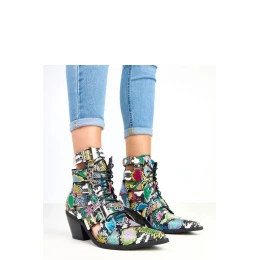 Elegantné dámske členkové čižmy vyrobené z kvalitnej ekokože s ozdobnými výrezmi, šnurovaním a efektnými prackami, ktoré im dodávajú jedinečný charakter. Úzky špicatý nos a 7,5 cm podpätok opticky zjemňujú postavu a zaručujú pohodlie aj stabilitu. 14 cm vysoký zvršok krásne zvýrazňuje členok a vnútro vybavené látkou zaručuje pohodlie pri nosení. Vďaka absencii podšívky je model ideálny na prechodné obdobie. Ide o členkové čižmy s moderným a elegantným dizajnom, ktoré dodajú charakter každodenným aj výnimočnejším štýlom.