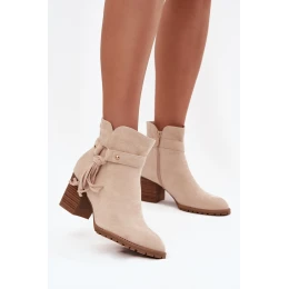 Dámske čižmy vyrobené z eko-semišu. Klasický strih s okrúhlou špičkou bol obohatený o pásik s mihalnicami, ktorý čižmám dodáva originalitu. Model umiestnený na stabilnom stĺpikovom podpätku krásne zoštíhľuje postavu a zároveň poskytuje pohodlie počas každodenného nosenia. Praktické zapínanie na zips uľahčuje obúvanie a vyzúvanie, vďaka čomu sa čižmy pohodlne používajú. Ide o obuv, ktorá sa bude skvele vynímať v jesenno-zimnej sezóne a predstavuje štýlový doplnok k ležérnym aj elegantnejším outfitom.
