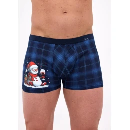 Pánske úzke boxerky - tmavomodré kockované s veselým snehuliakom