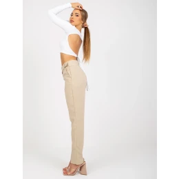 Béžové nohavice z rovného materiálu s vysokým strihom.
