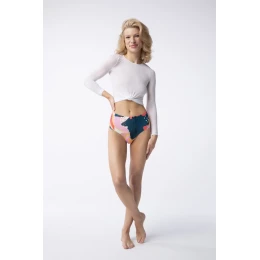 Bikiny s vysokým pásom sú dokonalou kombináciou klasických nohavičiek a tangáčov, ideálnou voľbou pre ženy, ktoré si cenia pohodlie a módu. Vďaka hlbšiemu strihu na zadku bikiny zdôrazňujú prirodzené krivky postavy, čo im dodáva pôvab a zmyselnosť. Model Brasil Maxi má tiež zvýšenú hornú časť. Pre ženy, ktoré nepreferujú tangá kvôli nepohodliu, je vynikajúcou alternatívou model Brasil s vysokým pásom. Umožňujú vám cítiť sa sebaisto a zmyselne a zároveň pohodlne. Tutti Frutti je ovocná abstrakcia, ktorá sa stáva dizajnom tlače na nadchádzajúce jarné a letné mesiace. Lákavé, teplé farby vytvárajú kompozíciu, ktorá okamžite vyvoláva asociácie s radostným letom. Abstraktné kvapky pripomínajú plátky melóna a vytvárajú jedinečný a energický vzor. Táto osviežujúca estetika so sebou prináša atmosféru sviežosti a radosti. Vzor Tutti Frutti je ako pozvánka na letné dobrodružstvo, kde sa hlavnými postavami módnej scény stáva šťavnaté ovocie. Lákavé farebné kombinácie odrážajú energiu letného slnka, vďaka čomu sa nositeľ cíti ako skutočná hviezda letných dní.