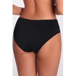 Spodní díl v sytě černé barvě jemně zeštíhluje postavu a poskytuje plné zakrytí hýždí, zatímco pás s tropickým potiskem se váže k podprsence SK 250 a vytváří estetický a ucelený komplet. Tento model je ideální pro plážové i vodní aktivity - nabízí styl, stabilitu a pohodlí.