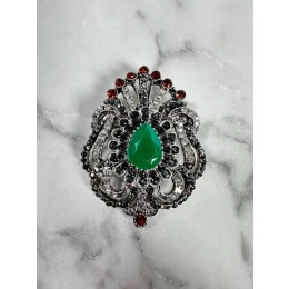 Brož model 18753863 stříbrná + zelená - K-Fashion
