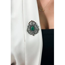 Brošňa XZ459-109 strieborná + zelená