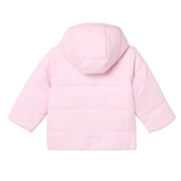 2 Kurtka dla dzieci adidas sprawdzi się w zimowe dni. Standardowy krój. Syntetyczne wypełnienie rozłożone w poziomych panelach w połączeniu z technologią Climawarm otula ciało ciepłem, jednocześnie oferując odprowadzenie nadmiaru wilgoci. Zamek na dalej długości. Odpinany kaptur bez regulacji. Odblaskowe detale. Materiał: 100% poliester z recyklingu