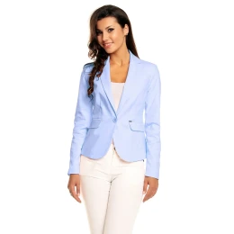 Jednoduché a elegantné sako s jedným gombíkom uprostred. Výstrih má hlboký špicatý golier. Ozdobné aplikácie imitujúce vrecká na bokoch v prednej časti. Ideálne na prechodné ročné obdobia. Bavlnené sako s podšívkou je vhodné na jesenné a jarné pracovné stretnutia a rodinné udalosti.