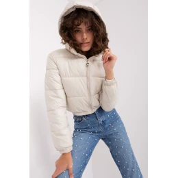 Dámska páperová krátka prešívaná bunda s dlhými rukávmi, zapínanie na zips. Celopodšitá bunda s odopínacou kapucňou, vrecká na zips po stranách.