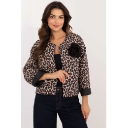Dámska prechodná bunda v ležérnom štýle, ideálna na jeseň, zimu a jar. Prešívaná, s jednofarebnou podšívkou, poskytuje ľahké pohodlie bez zateplenia. Je vyrobená z odolného polyesteru a je ideálna na chladnejšie dni. Je doplnená jemným zvieracím motívom a ozdobným čiernym kvetom na úrovni hrudníka, čo jej dodáva originalitu a štýl. Bunda má krátku dĺžku a dlhé rukávy a absencia zapínania jej dodáva moderný, ležérny vzhľad. Ideálna na každodenné bežné alebo pracovné oblečenie.