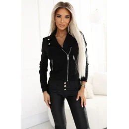 Bunda s racerbackom Numoco Basic je semišová bunda s krátkymi rukávmi a dlhými rukávmi a ozdobnými zipsami, ktoré jej dodávajú charakter. Je vyrobená z čierneho materiálu príjemného na dotyk, poskytuje štýlový vzhľad a pohodlie pri nosení. Vyrobené v Európe.