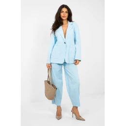 Tento dámský džínový sako je univerzálním prvkem šatníku, který skvěle kombinuje klasický střih s každodenním, volným stylem. Vyrobený z vysoce kvalitní bavlny s přídavkem elastanu poskytuje pohodlí nošení, dostatečnou pružnost a dobře padne k postavě. Lehká konstrukce bez podšívky z ní činí ideální model pro jarně letní sezónu. Sako má límec a jednořadé zapínání na knoflík, což dává celku nadčasový charakter. Nášivky kapes zdůrazňují džínový styl a zvyšují funkčnost, boční rozparky dole zase poskytují volnost pohybu a lehkost formy. Hladký materiál umožňuje snadné kombinování saka s různými kousky šatníku od šatů, přes kalhoty, až po volné sestavy s tričkem. Je to sako, které skvěle doplní každodenní outfit, přidávající mu lehkost a městský charakter. Ideální do práce, na procházku nebo setkání s přáteli vždy, když chcete vypadat stylově a cítit se pohodlně.