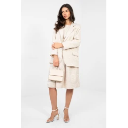 Elegantné dámske sako štandardnej dĺžky, ktoré dokonale spája klasiku s jemnou dávkou originality. Model má pestrú štruktúru materiálu a výraznú kvetinovú potlač, ktorá dodáva celkovo jedinečný ženský charakter. Je vyrobené z vysokokvalitnej zmesi polyesteru a viskózy, vďaka čomu poskytuje pohodlie pri nosení, odolnosť a estetický dojem na dlhý čas. Dlhé rukávy a skladacie goliere zvýrazňujú nadčasový strih a zapínanie na jeden gombík dodáva eleganciu a univerzálnosť. Sako je podšité, vďaka čomu skvele sedí na postave a zaručuje pohodlie pri nosení. Je ideálnou voľbou na kancelársky štýl aj na špeciálne príležitosti, keď chcete vyzerať štýlovo a elegantne.