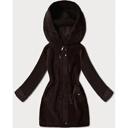 Vlněná bunda typu alpaka v čokoládové barvě s kapucí model 21482441 - MHM