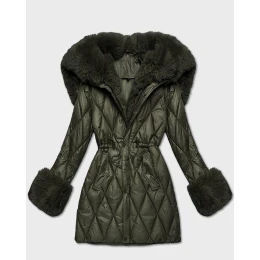 Bunda v khaki barvě s kožešinovou kapucí, model 21757965 - HONEY WINTER