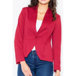 Nadčasové sako, které dokonale zvýrazní ženské přednosti. Má ozdobný límec a zapínání na jeden knoflík. Perfektně tvarovaný střih opticky zeštíhluje postavu. Podšívka zaručuje pohodlí a správné přizpůsobení postavě. Bude se vám hodit jak v práci, tak během chladnějších večerů.