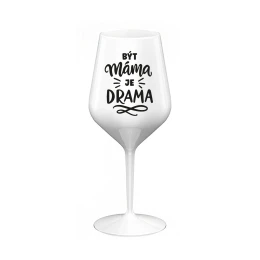 BÝT MÁMA JE DRAMA - bílá nerozbitná sklenice na víno 470 ml