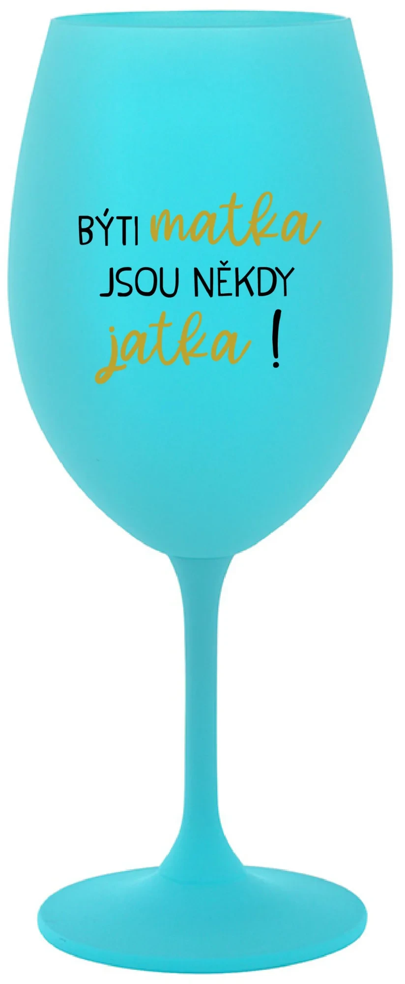 BÝTI MATKA JSOU NĚKDY JATKA! - tyrkysová sklenice na víno 350 ml