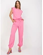 Rozmery súpravy vo veľkosti S merané na plocho: šírka blúzky v podpazuší - 44 cm, dĺžka blúzky - 58 cm, šírka nohavíc v páse - 32 cm, výška v páse - 29 cm, dĺžka nohavíc - 101 cm.