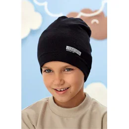 Chlapčenská čiapka z jednej vrstvy jemnej bavlny s malou aplikáciou.