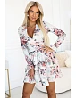 CAROLINE - Dámske šaty s volánikmi, preloženým obálkovým výstrihom as kvetinovým vzorom na svetlom pozadí 297-2