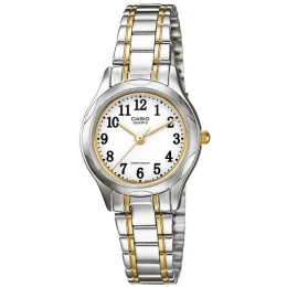 Snehobiely ciferník s výraznými čiernymi číslicami je kombináciou minimalizmu a elegancie, vďaka ktorej sú hodinky mimoriadne čitateľné a funkčné. Zlaté ručičky a jemné detaily im dodávajú ušľachtilý nádych, zatiaľ čo lesklý strieborno-zlatý náramok im dodáva šperk, ktorý sa krásne hodí k akémukoľvek štýlu. Štíhle puzdro s jemne zaoblenými hranami dokonale sedí na ženskom zápästí, čím zdôrazňuje jeho jemnosť a pôvab. Každý detail týchto hodiniek CASIO bol navrhnutý s ohľadom na ženskú jemnosť a klasickú krásu.