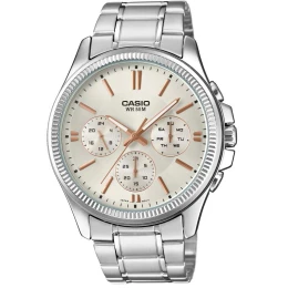 HodinkyCASIO MTP-1375D-7A2VDF sú hodinky pre mužov, ktorí majú radi všetko pod kontrolou - štýl, čas aj kvalitu. Klasická oceľová konštrukcia s iónovým povlakom zaručuje trvanlivosť a odolnosť voči každodenným nástrahám, zatiaľ čo ciferník s elegantnými striebornými akcentmi dodá charakter každému vzhľadu - od obleku až po džínsy. Subciferníky zobrazujúce deň v týždni, dátum a čas v 24-hodinovom režime vám poskytnú kompletný obraz na prvý pohľad bez toho, aby ste museli siahať po telefóne. Vodotesnosť do 50 metrov a presnosť strojčeka (±20 sekúnd/mesiac) znamenajú pokoj - nemusíte sa obávať počasia, náhodného postriekania ani meškania. Celé to vytvára výrazný, mužný štýl, ktorý priťahuje pozornosť a vďaka ktorému hodinky výrazne prevyšujú svoju cenovú triedu.