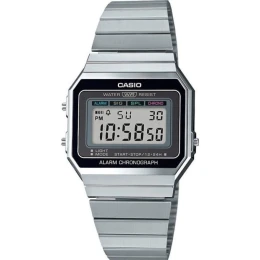 Zanurz się w klimacie retro z zegarkiem z kolekcji CASIO Vintage A700W, który łączy oldschoolowy charakter z nowoczesnym komfortem noszenia. Ultrasmukła koperta (6 mm!) subtelnie oplata nadgarstek, tworząc lekką, niemal biżuteryjną formę, która nie przytłacza, lecz przyciąga spojrzenia. Model posiada wskazanie czasu w formie cyfrowej:godzina, minuta, sekunda, oznaczenie pory dnia (PM), data, dzień tygodnia. A gdy przychodzi moment działania – ma wszystko, czego trzeba. Wyposażony w precyzyjny stoper 1/100 sekundy, codzienny alarm i odporną za zachlapania konstrukcję, idealnie odnajduje się w rytmie codzienności. Niezależnie, czy mierzysz czas, czy tylko go celebrujesz – masz wszystko pod kontrolą. A gdy dzień dobiega końca,podświetlenieLED z bursztynowym światłem wprowadza klimatyczny nastrój, odsłaniając tarczę w subtelnej poświacie. Dopełnieniem całości jest bransoleta ze stali nierdzewnej – trwała, wygodna i ponadczasowa jak styl, który reprezentujesz.