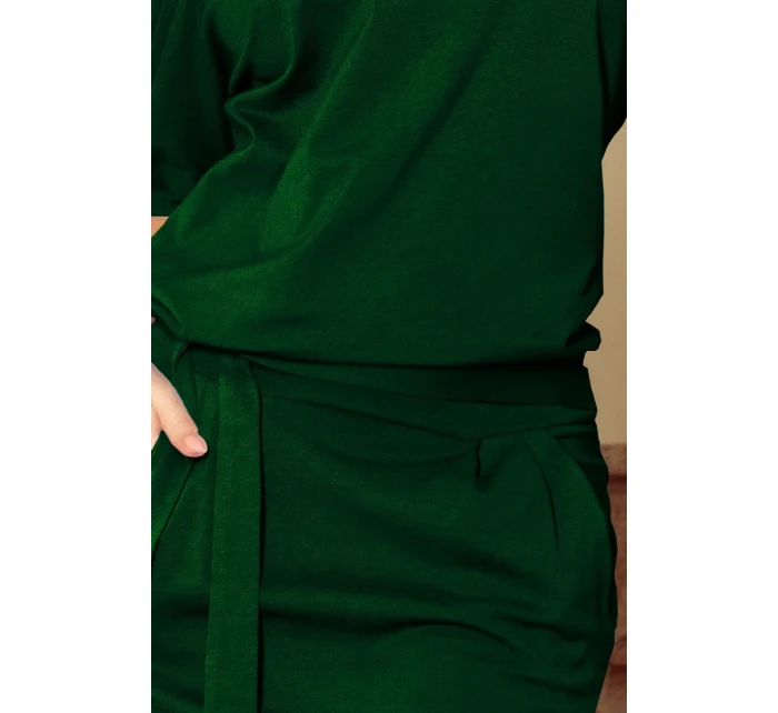 Dámske šaty v fľaškovo zelenej farbe s krátkymi rukávmi model 7606649