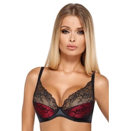Biustonosz marki PariPari. Model Catherine III. Posiada druty, które podpierają piersi odpowiednio je kształtując. Fiszbiny pionowe osadzone na bokach. Produkt posiada regulowane ramiączka bez możliwości ich odpięcia. Haczyki do ramiączek metalowe. Biustonosz zapinany na haftki. Miejsce zapięcia: tył. Produkt został wykonany z 80% poliamid, 20% elastan. Produkt damski.