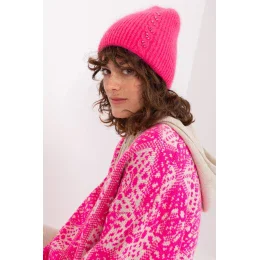 Teplá zimná čiapka s pleteným vzorom. Zaujímavá aplikácia na prednej strane.