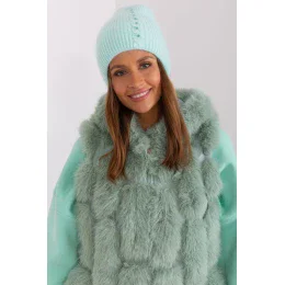 Teplá zimná čiapka s pleteným vzorom. Zaujímavá aplikácia na prednej strane.