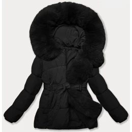 Černá bunda pro přechodné období s páskem model 21248557 - J.STYLE