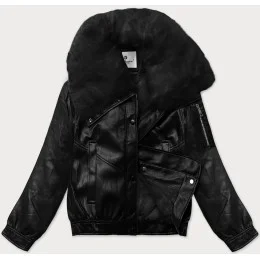 Černá kožená bunda s velkým límcem model 21248134 - Glakate