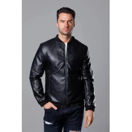 Čierna pánska bunda typu "bomber" z ekokože (11Z8015)