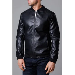 Černá pánská bunda typu "bomber" z ekokůže model 18347970 - J.STYLE