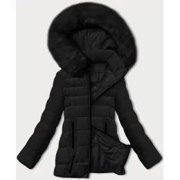 Černá prošívaná bunda pro přechodné období s kožešinou u kapuce model 21248217 - S'WEST
