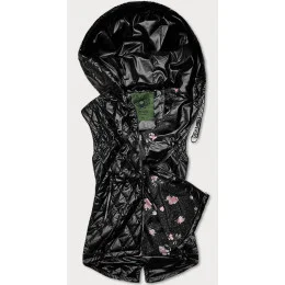 Čierna prešívaná dámska vesta s kapucňou (CAN-562BIG)