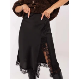 Černá saténová midi sukně s krajkou model 21756283 - Factory Price