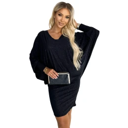 Černé dámské netopýří šaty s výstřihem a s brokátem model 18854389 - numoco