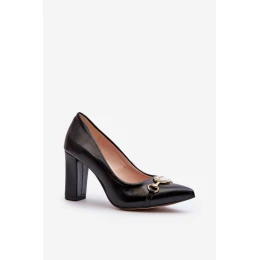 Černé kožené lodičky na podpatku se srdcem model 21652574 - Zazoo