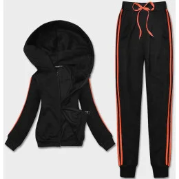 Čierno-oranžový dámsky teplákový komplet s lampasmi (KK0057)