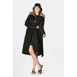 Černý dámský kabát s kožíškem model 15822773 - Ann Gissy